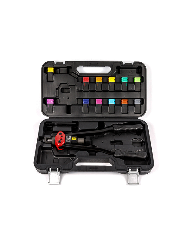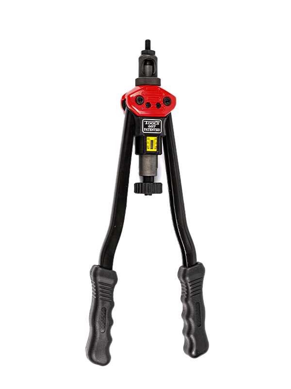 鉻鉬合金鋼鉚接桿,鋁合金本體,加強碳鋼熱處理手柄,人體工學設(shè)計弧形把手配合PVC柄套,操作更省力,使用更舒適。