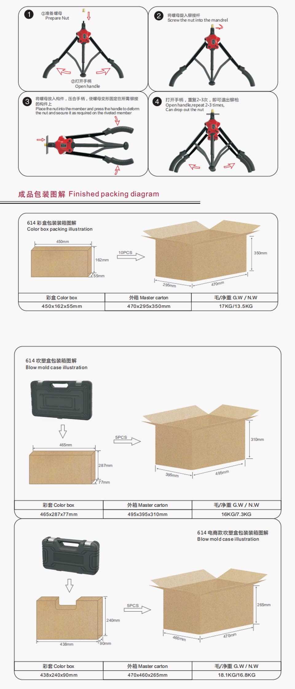 鉻鉬合金鋼鉚接桿,創(chuàng)新連動(dòng)臂設(shè)計(jì)與手柄一起實(shí)現(xiàn)自動(dòng)退出螺母,操作省時(shí)省力快速,人體工學(xué)設(shè)計(jì)弧形把手配合PVC柄套,操作更省力,使用更舒適。