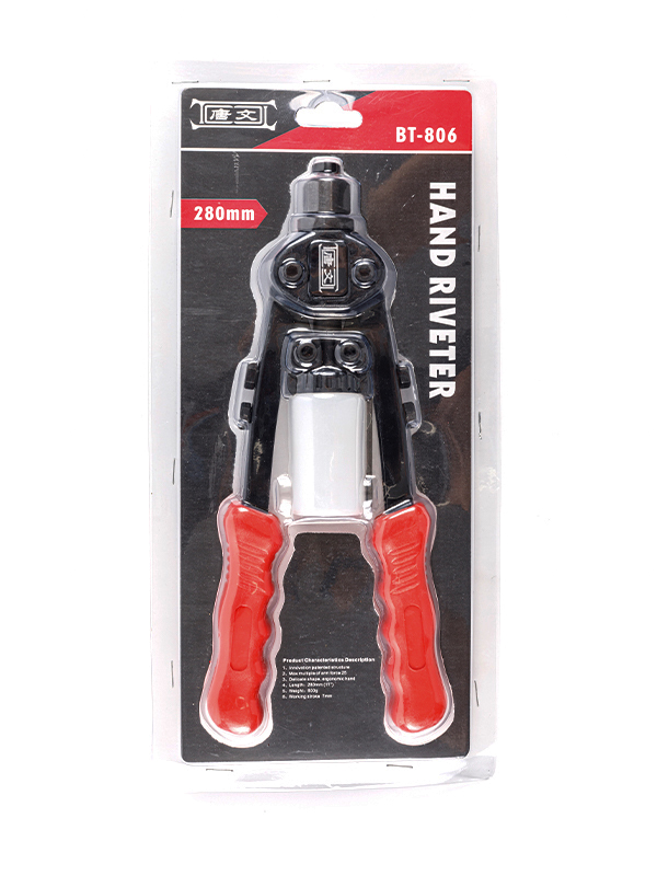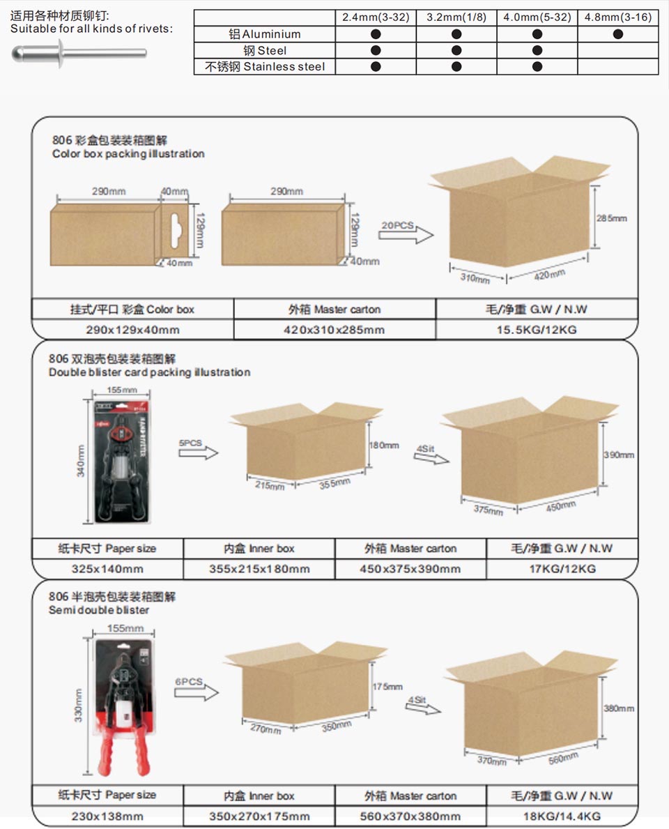 六角形套筒可調(diào)節(jié)工作行程,鋁合金本體,防震設(shè)計(jì),消除操作時(shí)鉚槍對(duì)手臂的震動(dòng),加強(qiáng)碳鋼熱處理手柄,配置的其他規(guī)格導(dǎo)嘴放置在手柄上,既不占用空間也方便跟換取用。